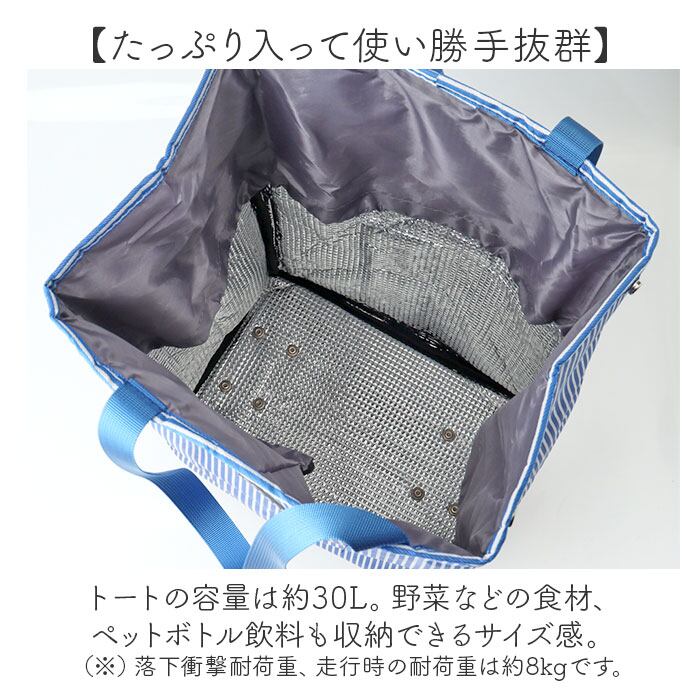 ・トートの容量は約30L。野菜などの食材、ペットボトル飲料も収納できるサイズ感。