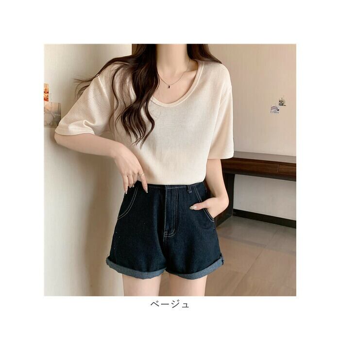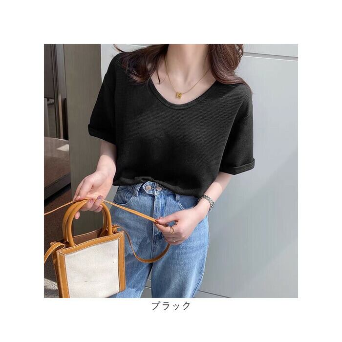 ・シンプルデザイン&ゆったりシルエットでリラックス。「レディース用ワッフルカットソー」。