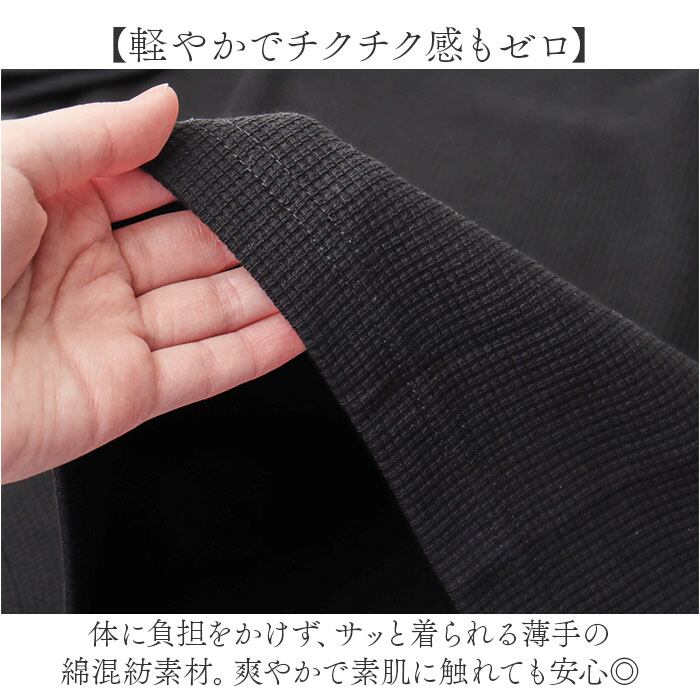 ・体に負担をかけず、サッと着られる薄手の綿混紡素材。爽やかで素肌に触れても安心◎