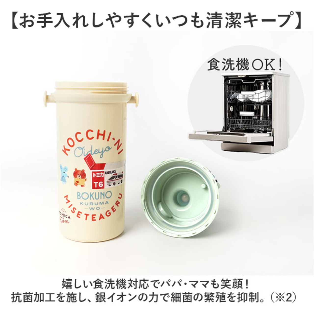・嬉しい食洗機対応でパパ・ママも笑顔!抗菌加工を施し、銀イオンの力で細菌の繁殖を抑制。