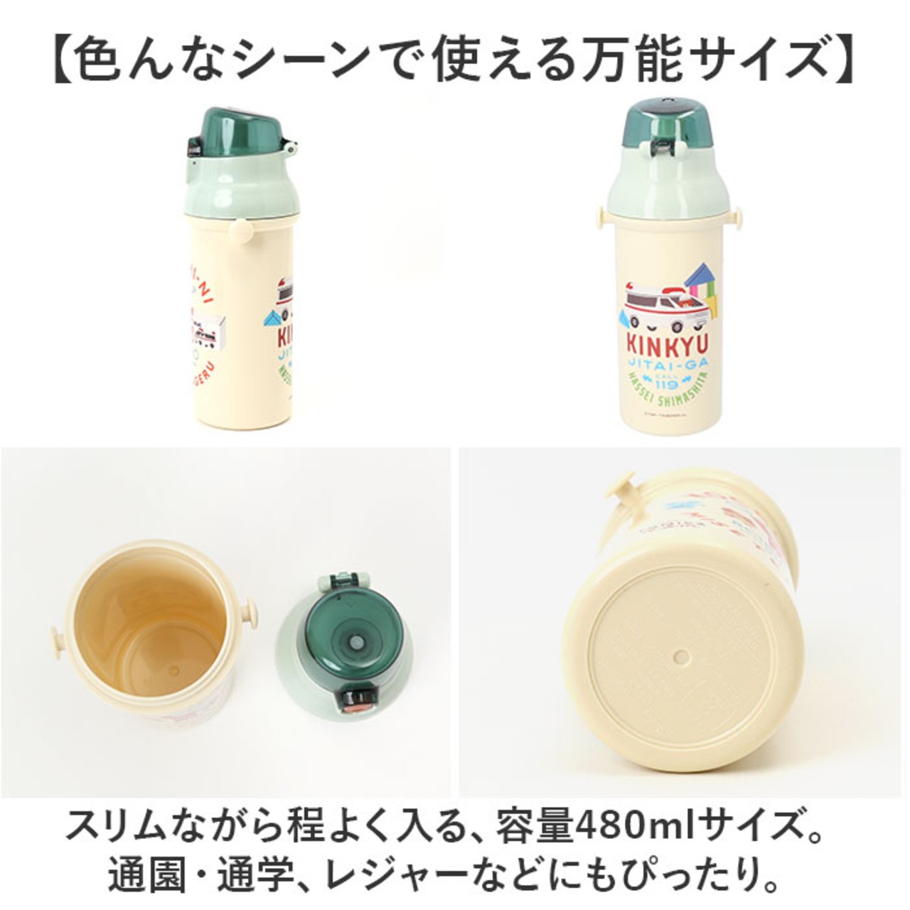 ・スリムながら程よく入る、容量480mlサイズ。通園・通学、レジャーなどにもぴったり。