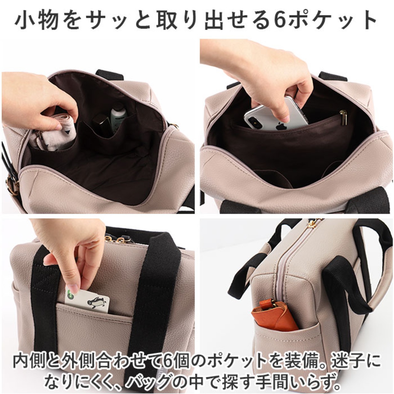 ・内側と外側合わせて6個のポケットを装備。迷子になりにくく、バッグの中で探す手間いらず。