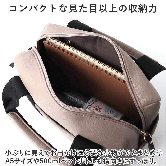 ・小ぶりに見えてお出かけに必要な小物がひとまとめ◎A5サイズや500mlペットボトルも横向きにすっぽり。