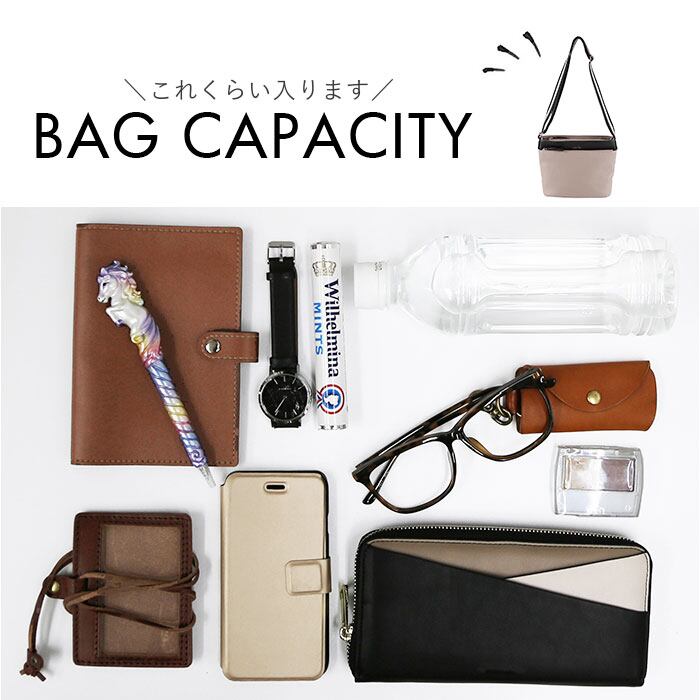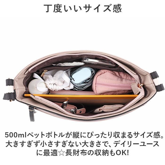 ・500mlペットボトルが縦にぴったり収まるサイズ感。大きすぎず小さすぎない大きさで、デイリーユースに最適☆長財布の収納もOK!