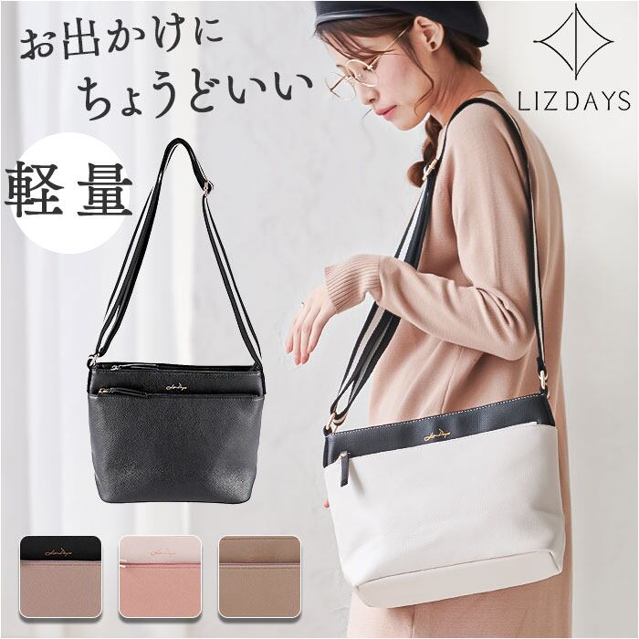 LIZDAYS ショルダーバッグ 通販 リズデイズ ショルダー バック レディース 斜めかけ 斜め掛け カバン かばん 鞄 肩掛け 大きめ マチあり 大人 かわいい ファスナー ポケット おしゃれ きれいめ 上品 収納 通勤 旅行 シンプル コンパクト