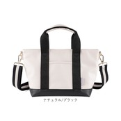 ・すっきりとした舟形に仕上げたミニトート。落ち着きのある質感のバッグに、テープデザインやラインを入れたショルダーがアクセント。