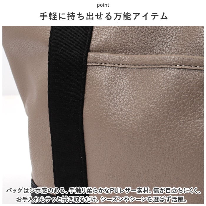 ・バッグはシボ感のある、手触り柔らかなPUレザー素材。傷が目立ちにくく、お手入れもサッと拭き取るだけ。シーズンやシーンを選ばず活躍。