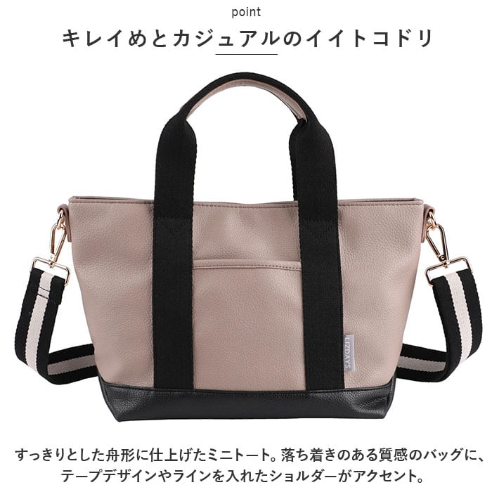 ・シンプルなデザインに大人感をプラス。LIZDAYSから、オン・オフ問わず使いやすい「2WAY PUミニトートバッグ」が新登場。