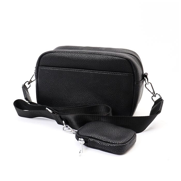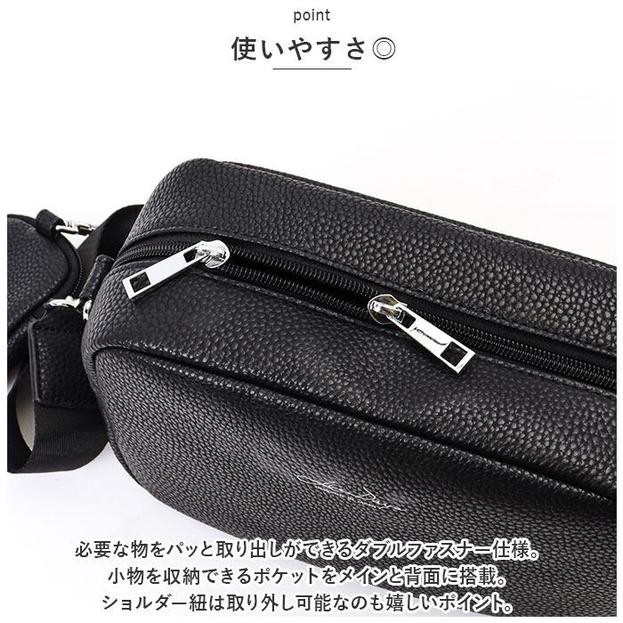 ・必要な物をパッと取り出しができるダブルファスナー仕様。小物を収納できるポケットをメインと背面に搭載。ショルダー紐は取り外し可能なのも嬉しいポイント。