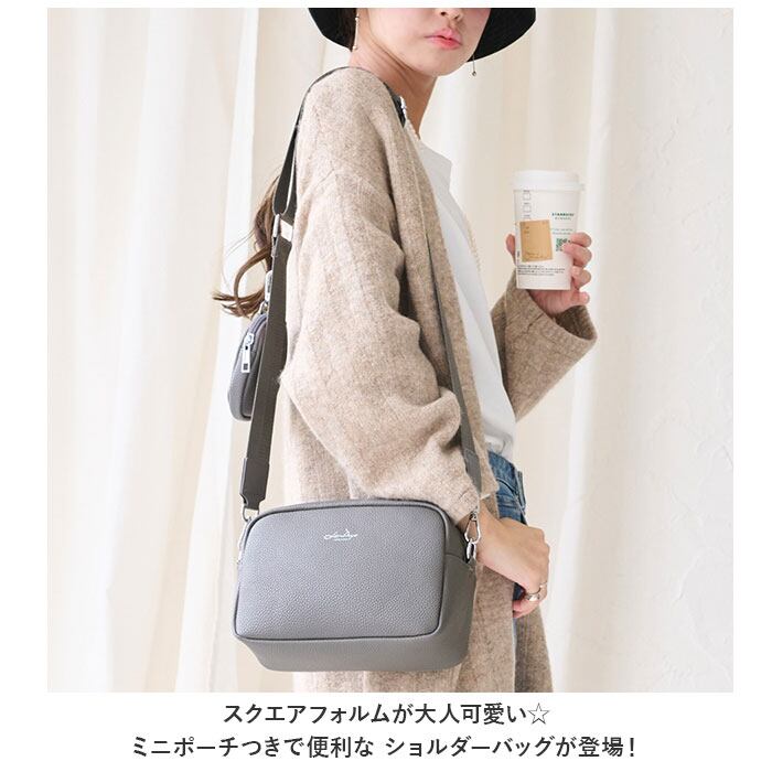 ・スクエアフォルムが大人可愛い☆ミニポーチつきで便利な ショルダーバッグが登場!
