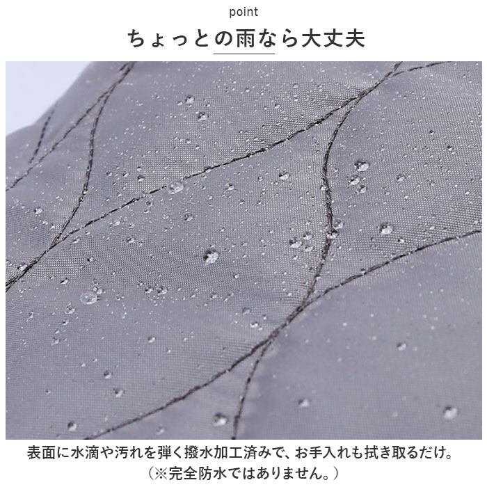 ・表面に水滴や汚れを弾く撥水加工済みで、お手入れも拭き取るだけ。(※完全防水ではありません。)