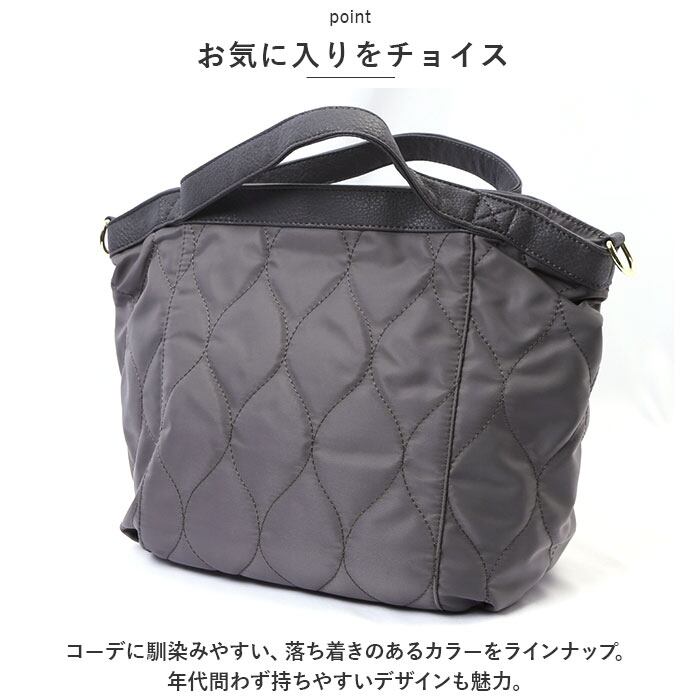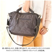 ・使い勝手ばっちり。手軽に持ち出せて、おしゃれのワンポイントにもなるキルティングデザイン♪「2WAYナイロンバッグ」が新登場。