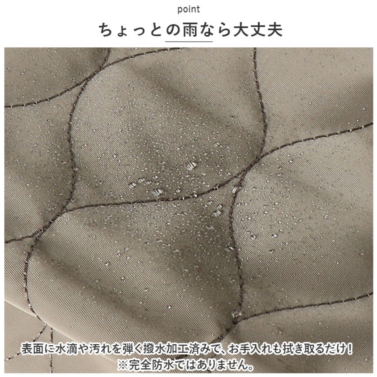 ・表面に水滴や汚れを弾く撥水加工済みで、お手入れも拭き取るだけ!(※完全防水ではありません。)