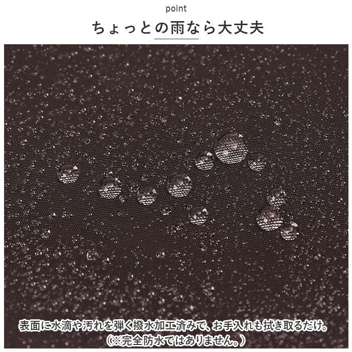 ・表面に水滴や汚れを弾く撥水加工済みで、お手入れも拭き取るだけ。(※完全防水ではありません。)