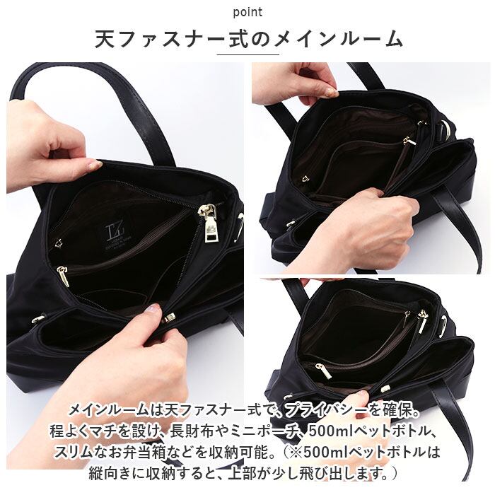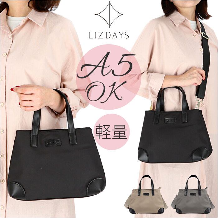 LIZDAYS リズデイズ トートバッグ 通販 lz71505 トートバック 肩掛けカバン バッグ バック 大容量 大きめ ナイロン ファスナー付き 仕切り 軽量 軽い レディース おしゃれ きれいめ 大人 かわいい シンプル