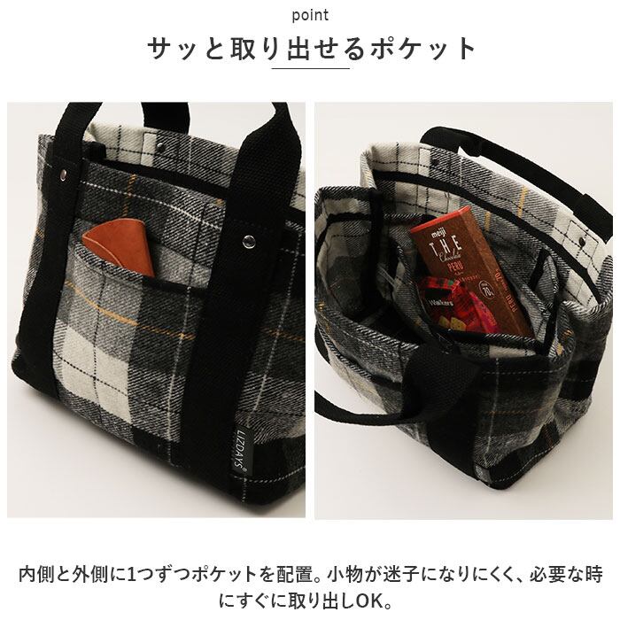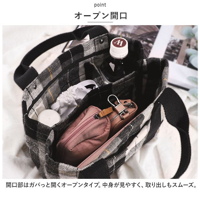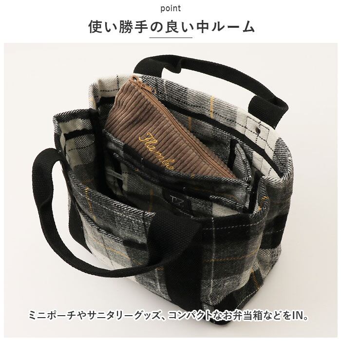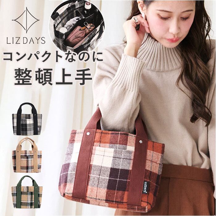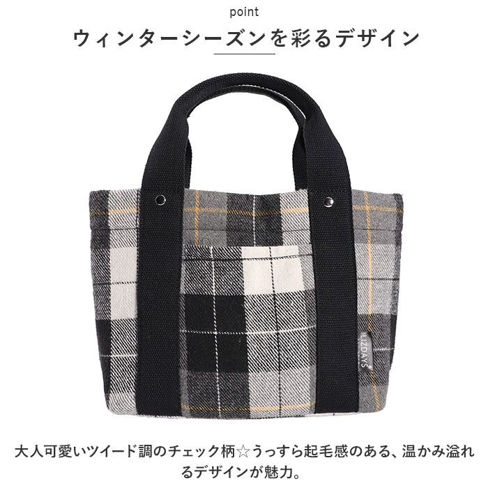 トートバッグ ミニ レディース 通販 仕切り トート ハンドバッグ 鞄 かばん バッグ バック チェック ツイード 軽量 b5 秋冬 おしゃれ かわいい 多収納 マチ広 通勤 通学 散歩 お出かけ ランチ お弁当 サブバッグ シンプル LIZDAYS リズデイズ