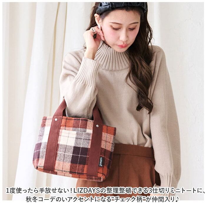 ・1度使ったら手放せない!LIZDAYSの整理整頓できる3仕切りミニトートに、秋冬コーデのいアクセントになる”チェック柄”が仲間入り♪
