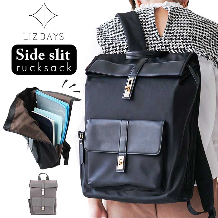 LIZDAYS リズデイズ フラップリュック リュック 大容量 通販 リュックサック バックパック デイバッグ マザーズリュック マザーズバッグ マザーズバック ナイロン 使いやすい フルオープン 口折れ 撥水 はっ水 レディース きれいめ カジュアル 通勤 通学