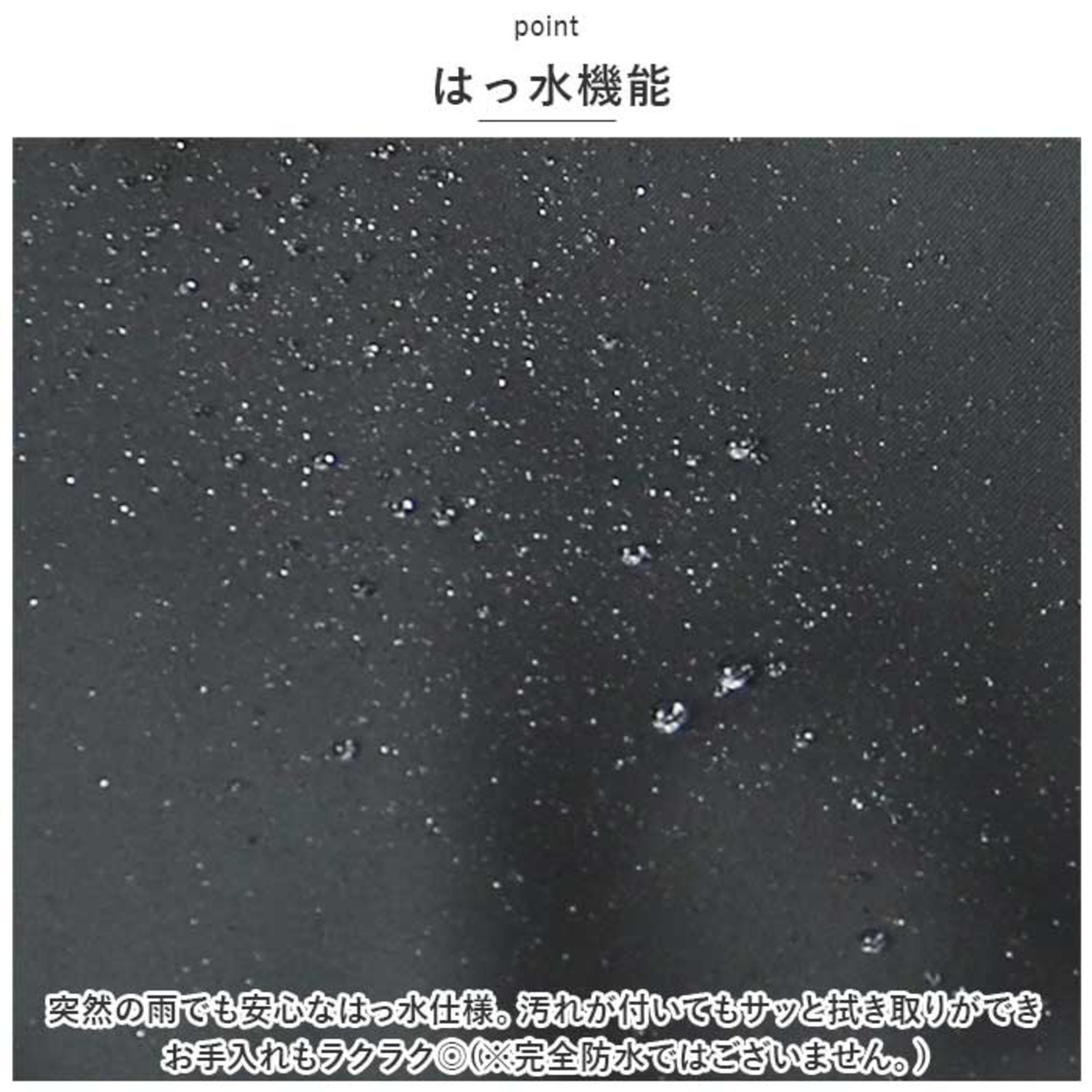 ・突然の雨でも安心なはっ水仕様。汚れが付いてもサッと拭き取りができお手入れもラクラク◎(※完全防水ではございません。)