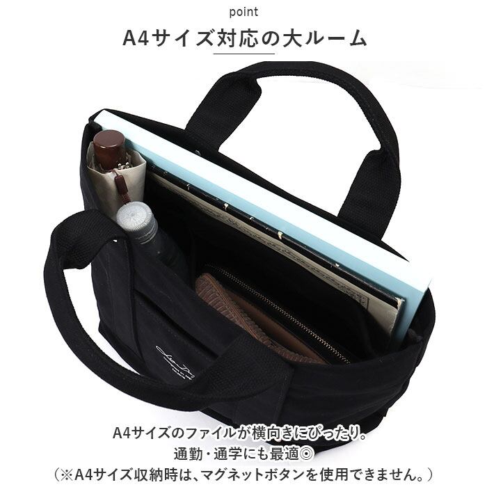 ・A4サイズのファイルが横向きにぴったり。通勤・通学にも最適◎(※A4サイズ収納時は、マグネットボタンを使用できません。)