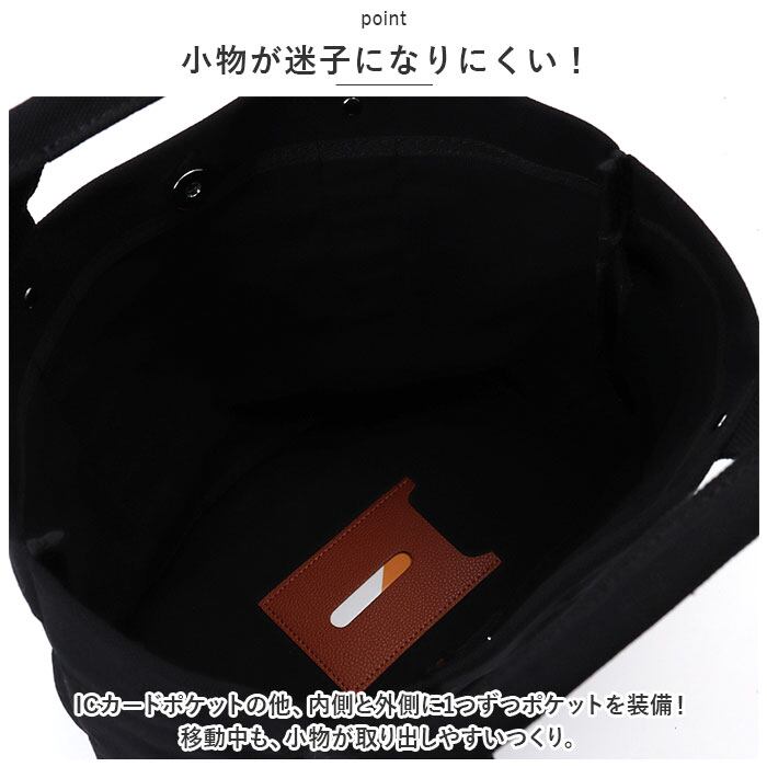 ・ICカードポケットの他、内側と外側に1つずつポケットを装備!移動中も、小物が取り出しやすいつくり。