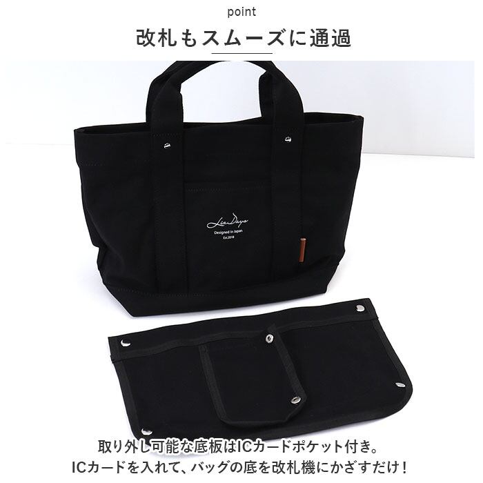 ・取り外し可能な底板はICカードポケット付き。ICカードを入れて、バッグの底を改札機にかざすだけ!