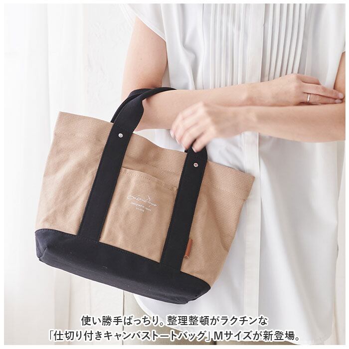 ・使い勝手ばっちり。整理整頓がラクチンな「仕切り付きキャンバストートバッグ」Mサイズが新登場。