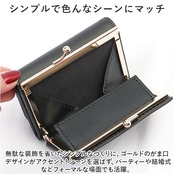 ・無駄な装飾を省いたシンプルなつくりに、ゴールドのがま口デザインがアクセント!シーンを選ばず、パーティーや結婚式などフォーマルな場面でも活躍。
