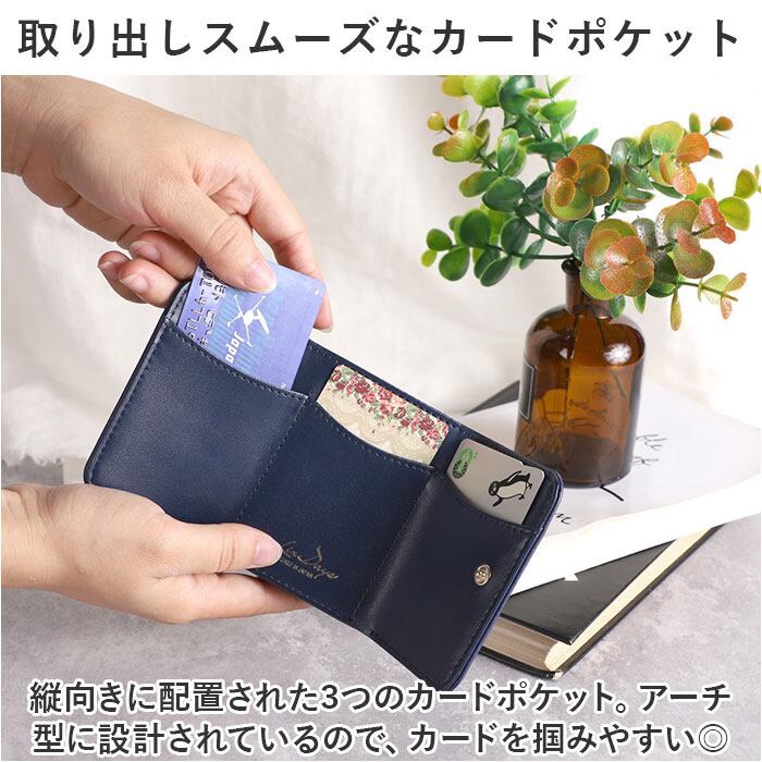 ・ミニマルに収まる三つ折り仕様。ミニバッグやアウターのポケットにすっぽり!キャッシュレス派にも嬉しいミニサイズ。