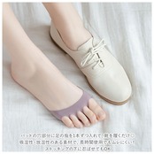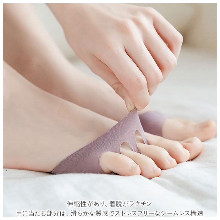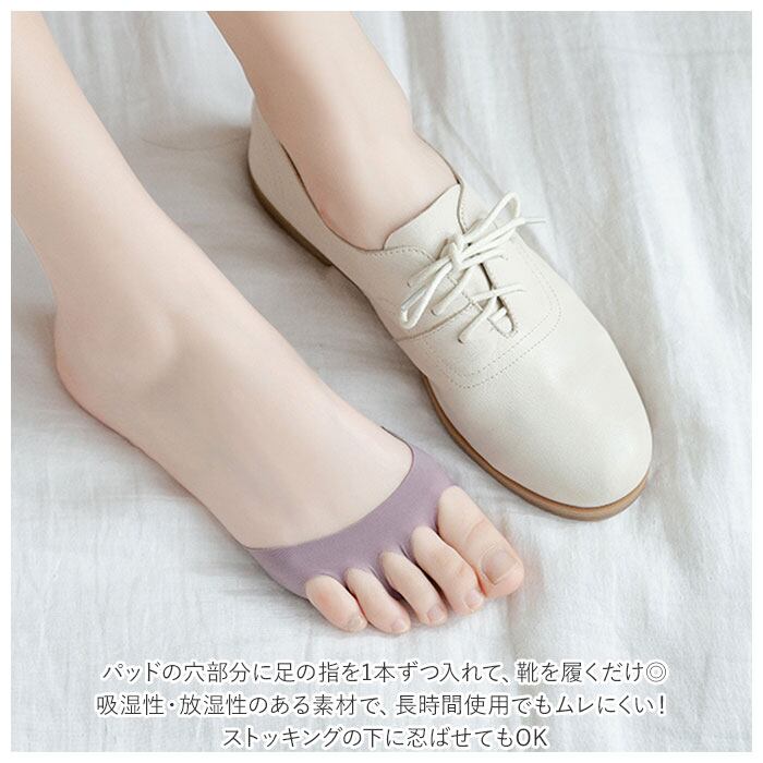・薄手の5本指タイプ。靴を履いた時にパッドが見えないよう設計されており、サンダルやミュールなど、どんなシューズにも対応◎