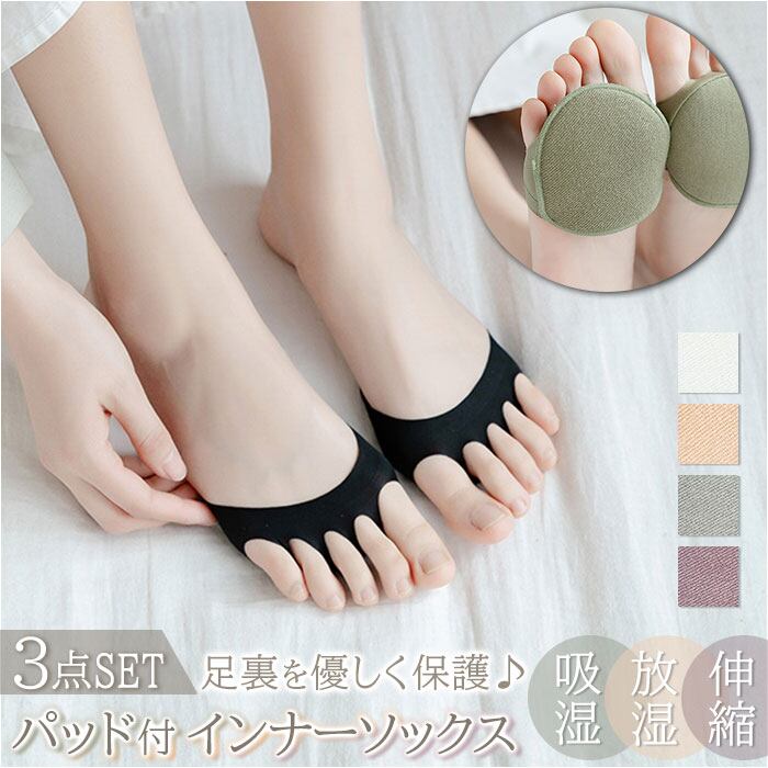 5本指 インナーソックス 3足セット 通販 足指 ソックス 靴下 フットパッド 五本指 パッド付き クッションパッド 衝撃吸収 吸汗 薄手 五本指ソックス 五本指靴下 5本指ソックス 5本指靴下 レッグウェア ファッション小物 ファッ