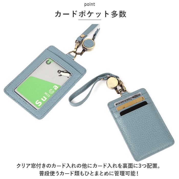 ・クリア窓付きのカード入れの他にカード入れを裏面に3つ配置。普段使うカード類もひとまとめに管理可能!