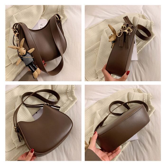 ・少しマットでなめらかなレザー調が魅力。ころんと丸みのあるフォルムでこなれた印象に。