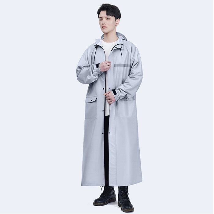 ・足元まで濡れにくいロング丈のレインコートが登場。