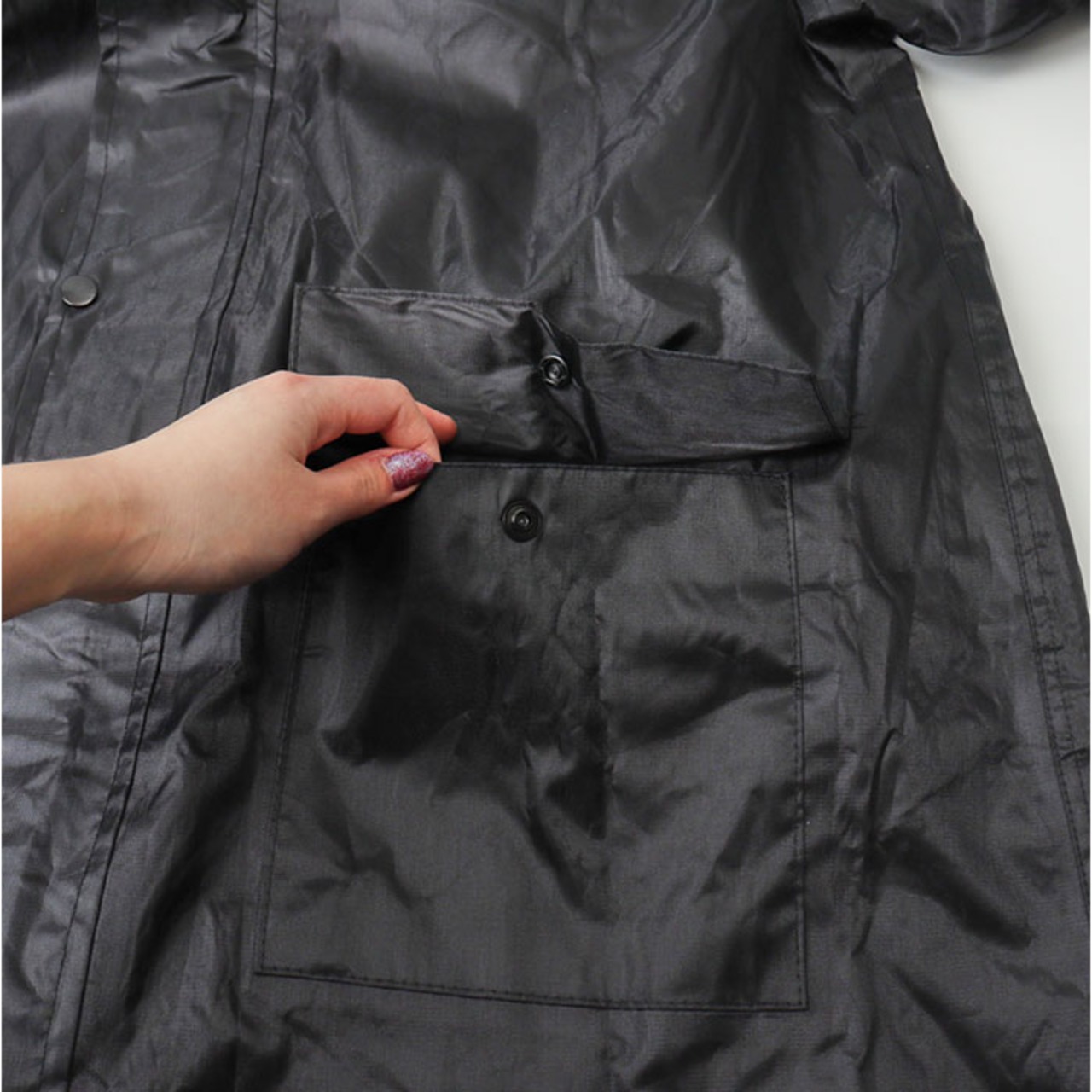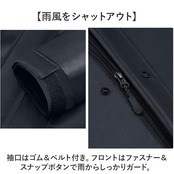・袖口はゴム&ベルト付き。フロントはファスナー&スナップボタンで雨からしっかりガード。