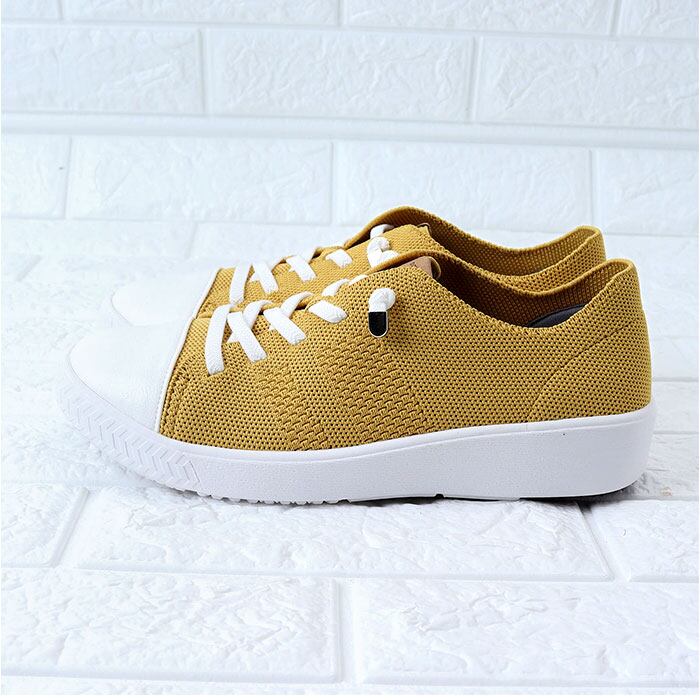 ・靴紐は伸縮性のあるゴム素材。靴紐を結ぶ手間なく、脱ぎ履きがスムーズで心地よくフィット。