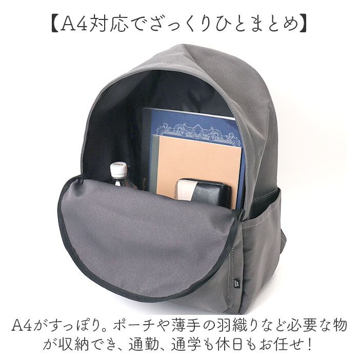 ・A4がすっぽり。ポーチや薄手の羽織りなど必要な物が収納でき、通勤、通学も休日もお任せ!