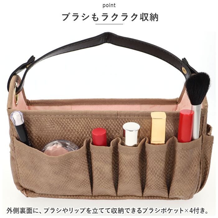 ・外側裏面に、ブラシやリップを立てて収納できるブラシポケット×4付き。
