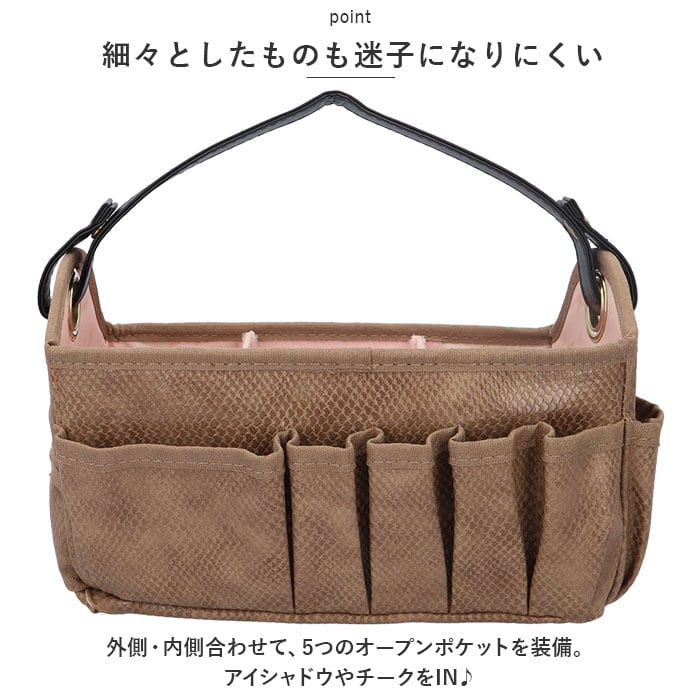 ・外側・内側合わせて、5つのオープンポケットを装備。アイシャドウやチークをIN♪