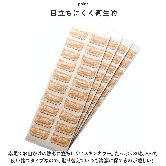 ・素足でお出かけの際も目立ちにくいスキンカラー。たっぷり80枚入った使い捨てタイプなので、貼り替えていつも清潔に保てるのが嬉しい!