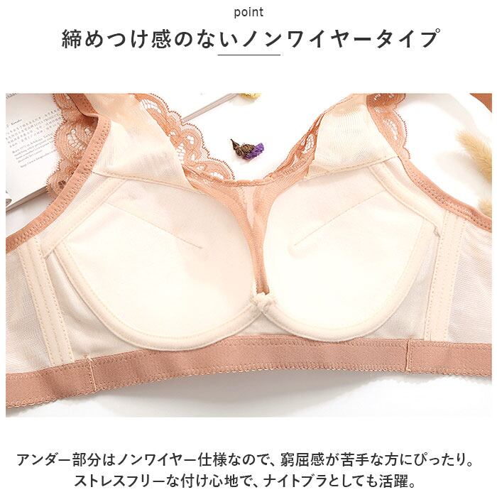 レースブラジャー 通販 下着 肌着 ブラジャー ブラ ノンワイヤー ノンワイヤーブラ ナイトブラ インナー アンダーウェア ウエア 脇高 産前 産後 フルカップ 柔らかい やわらかい かわいい カワイイ 大人 おとな 昼夜兼用 美胸 楽 ルームウェア