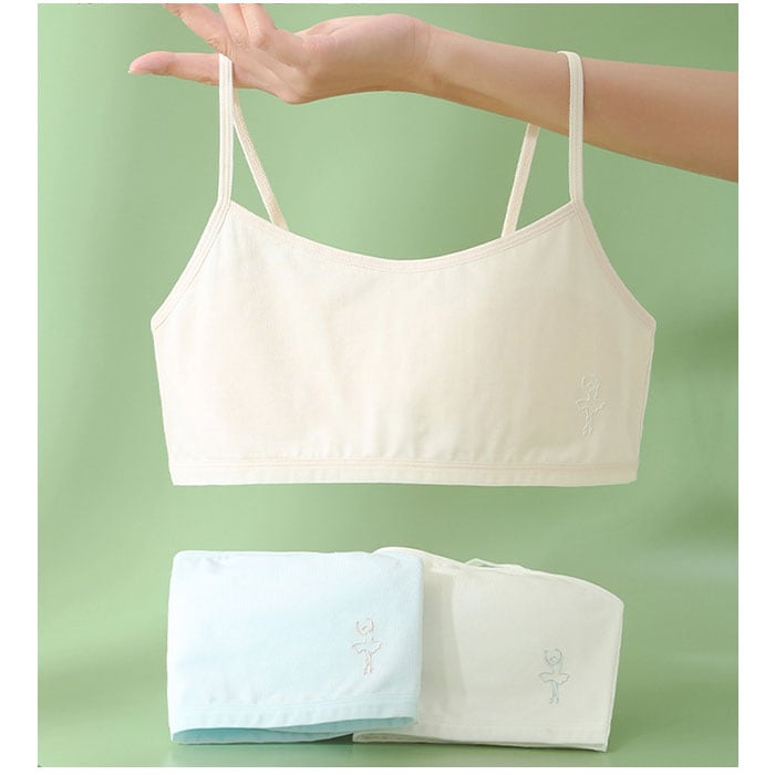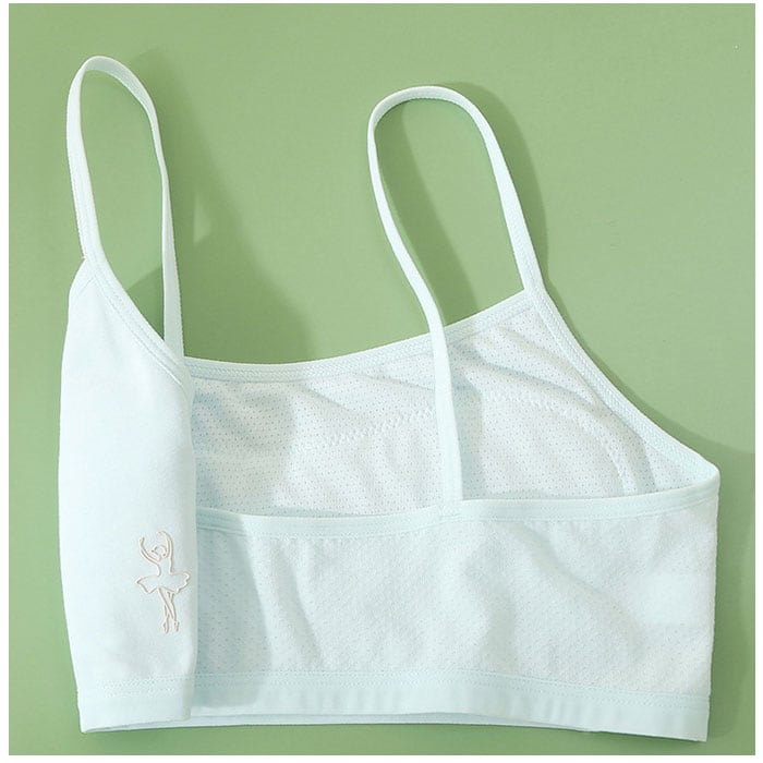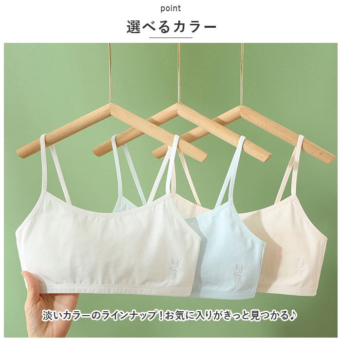 ・締め付け感がなく、楽な着心地を追求したノンワイヤー仕様。胸当てタイプで、優しく包んでフィットする◎身体の成長を優しく支えてくれる♪