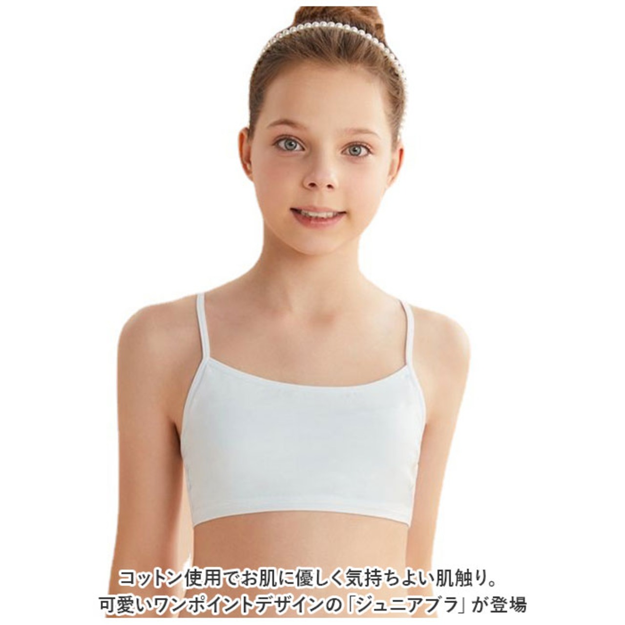 ・コットン使用でお肌に優しく気持ちよい肌触り。可愛いワンポイントデザインの「ジュニアブラ」が登場