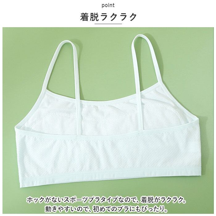 ジュニアブラ 通販 スポーツブラ スポブラ ブラジャー ブラ インナー インナーウェア 下着 肌着 ジュニア 小学生 綿 コットン ノンワイヤー 部活 スポーツ 通気性 柔らかい キッズ 子供 子供服 シンプル 薄手 かわいい 女の子