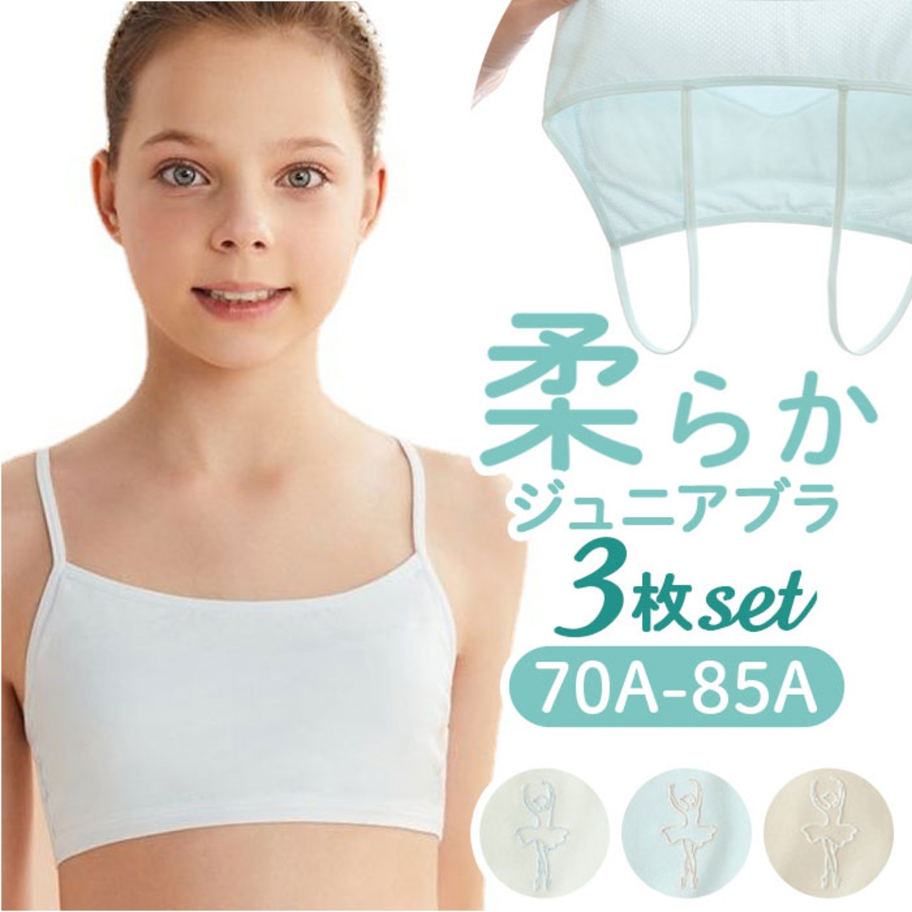 ・ノンワイヤーで締め付けない。コットン使用でお肌に優しい♪「柔らかジュニアブラ 3枚セット」が登場!