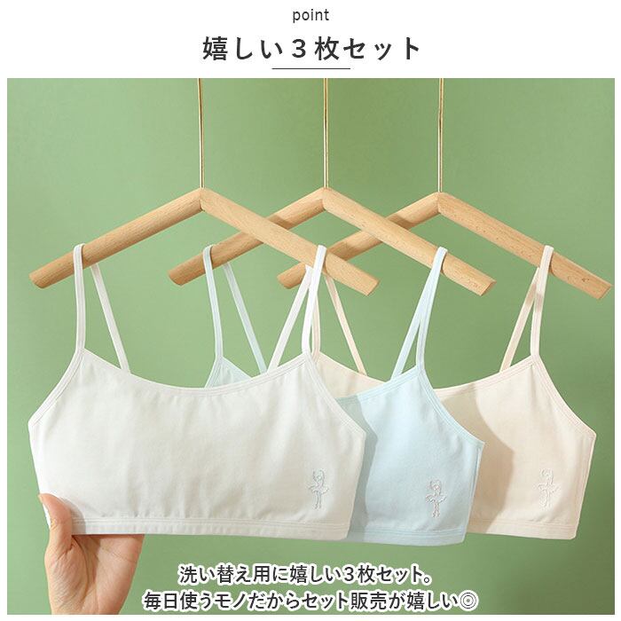 ジュニア ブラジャー 通販 スポーツブラ ブラジャー ブラ ファーストブラ 下着 肌着 キッズ 子供 中学生 小学生 3枚セット セット ノンワイヤー ハーフトップ インナー 綿 コットン フルカップ 無地 シンプル 女の子 ガールズ かわいい