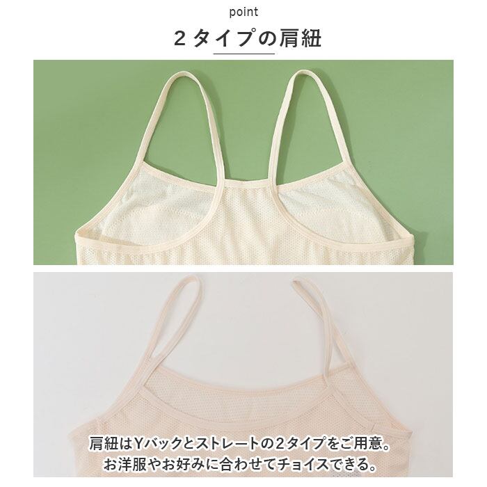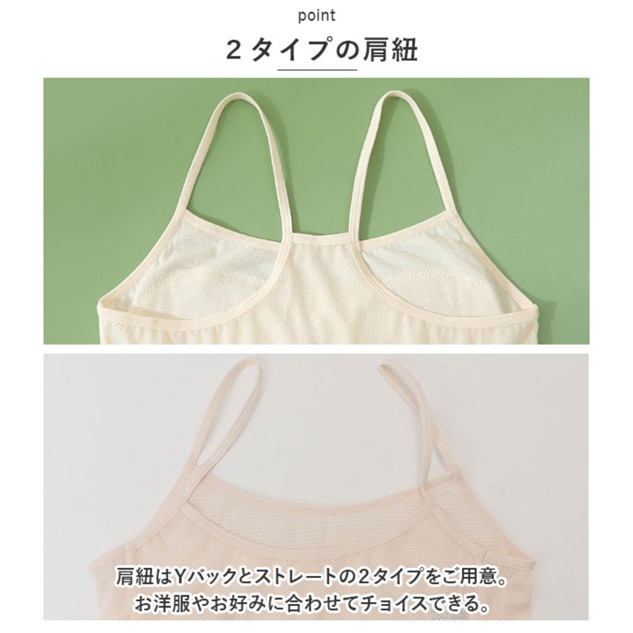 ・肩紐はYバックとストレートの2タイプをご用意。お洋服やお好みに合わせてチョイスできる。