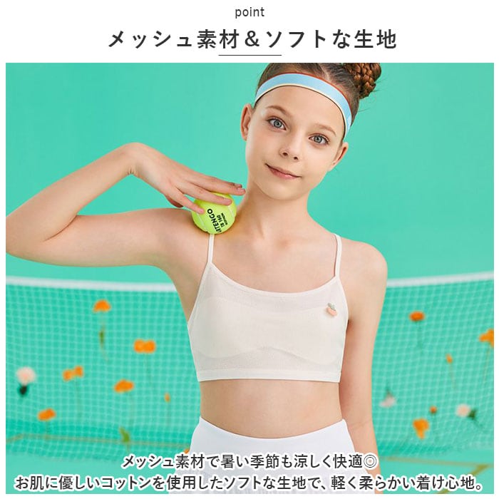 ・メッシュ素材で暑い季節も涼しく快適◎可愛いワンポイントデザインの「ジュニアブラ 2タイプ」が登場