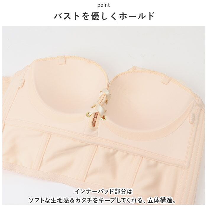 ・胸元のハトメ穴に付属の紐を通して編み上げれば、キレイな谷間を作り出せちゃう♪