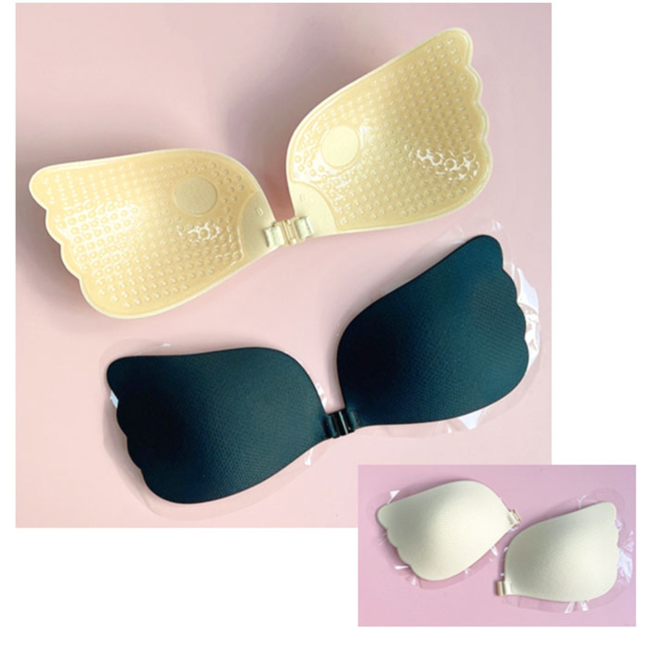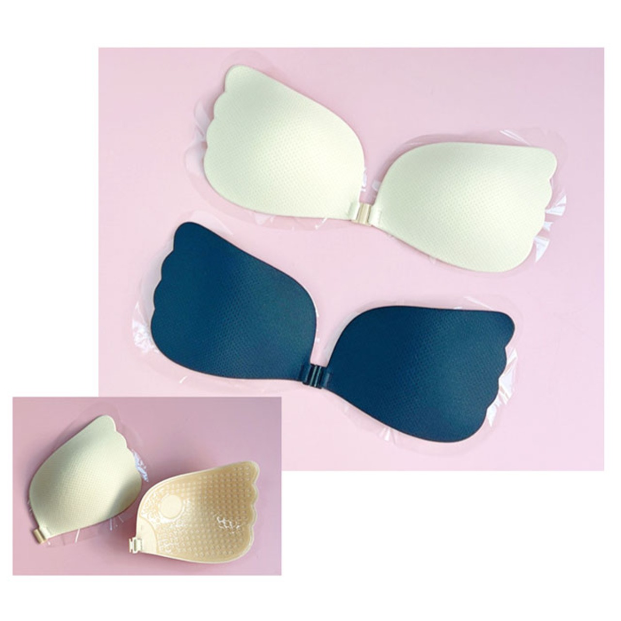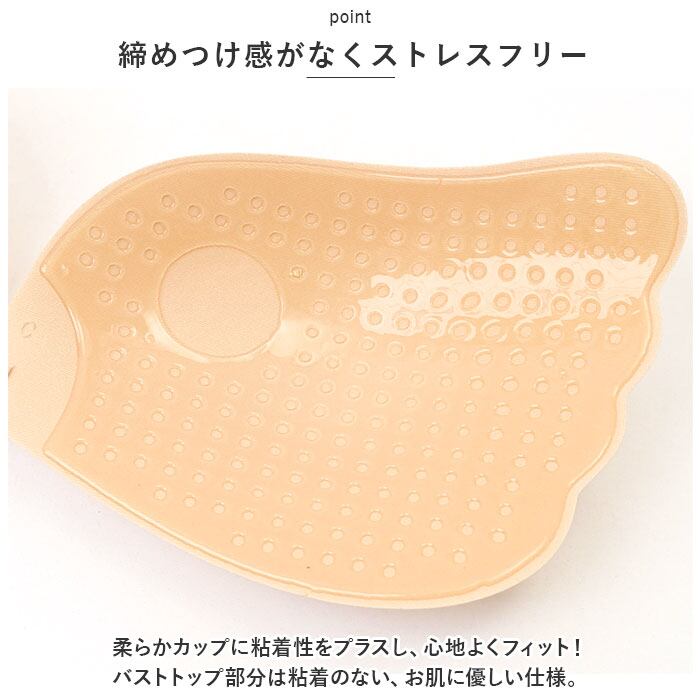 ・柔らかカップに粘着性をプラスし、心地よくフィット!バストトップ部分は粘着のない、お肌に優しい仕様。